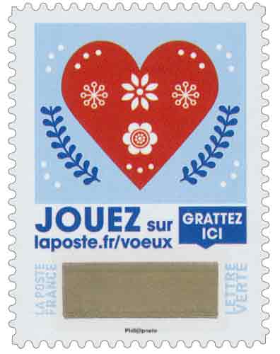 | Commentaire | Jeu ouvert sur le site internet www.laposte.fr/voeux du 12/11/2018 au 09/02/2019 inclus 2000 lots instantanés soit 1 lot disponible par heure + 10 Voyages à gagner par tirage au sort le 13 février 2019 Comment participer au jeu : "timbre à gratter" Cliquez-ici |