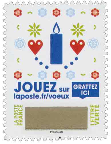 | Description | Provenant du carnet "Envoyez plus que des vœux" Troisième édition du jeu " Timbre à gratter" |