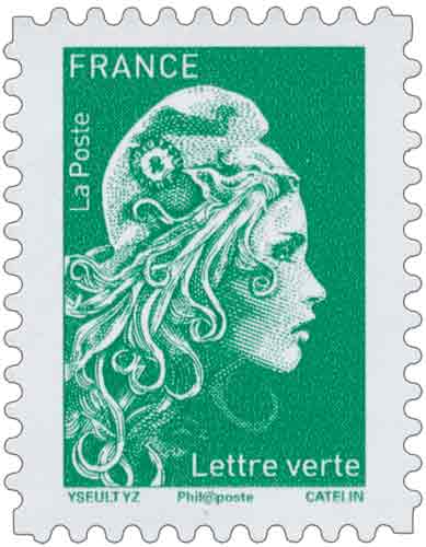 | Description | Timbre autoadhésif Marianne lettre verte TVP - provenant du carnet de 13 TP |