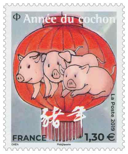 | Description | Provenant du blocs de 5 timbres consacrés à «l’Année du cochon». (grand timbre) |