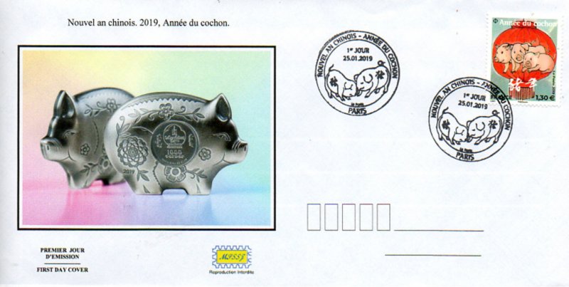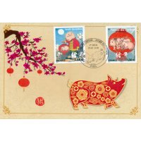 | Description | Provenant du bloc de 5 timbres consacrés à «l’Année du cochon». (petits timbres) |