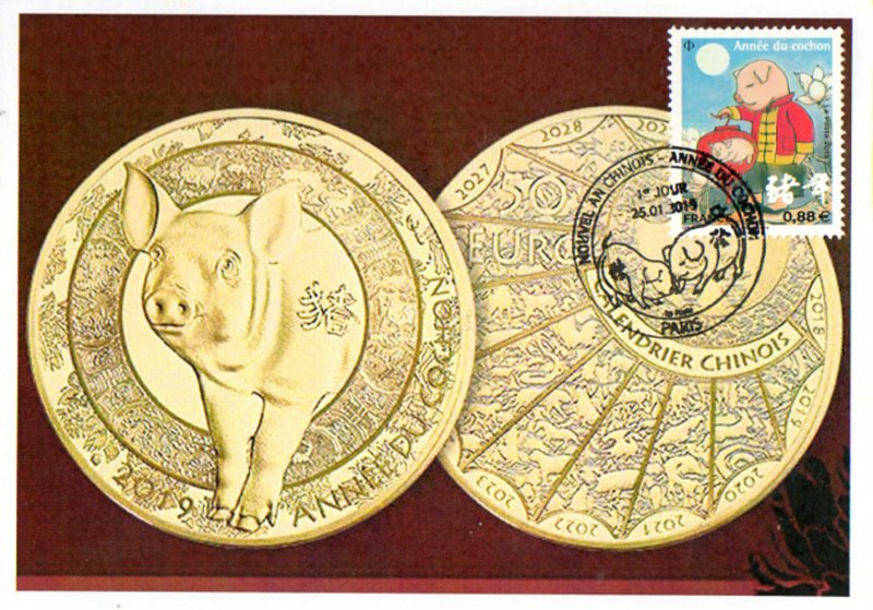 | Description | Deux blocs de 5 timbres consacrés à «l’Année du cochon». |