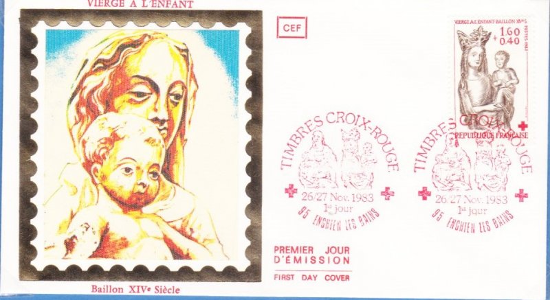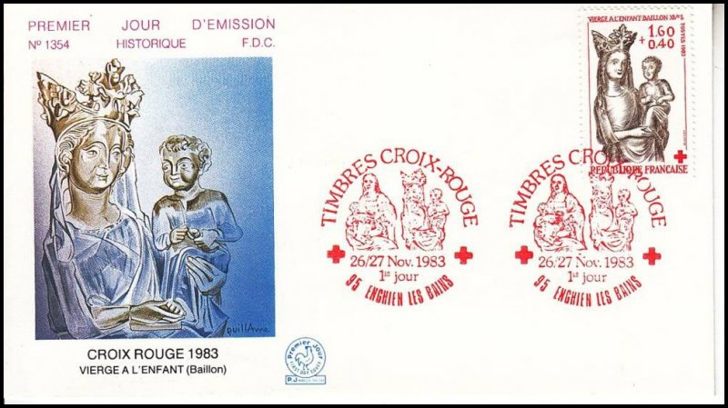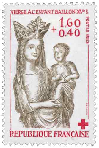 | Description | Au profit de la Croix-Rouge française. Vierge à l'enfant du XIVe, église de Baillon (Val d'Oise) |