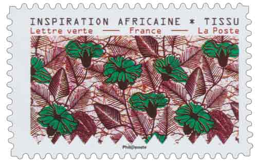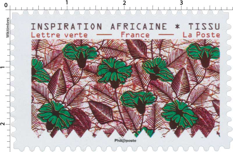 | Description | Timbre provenant du carnet de 12 timbres poste illustré par des tissus d’inspiration africaine conservés au Musée de l’Impression sur étoffes de Mulhouse |