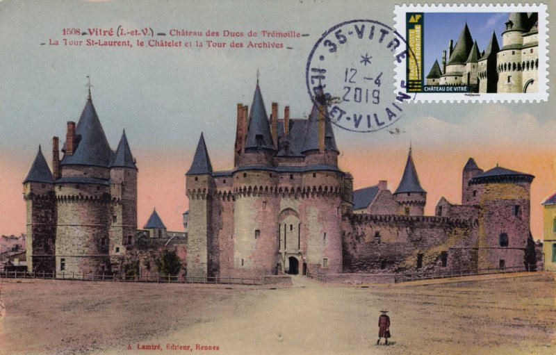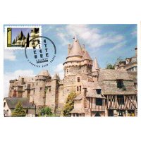 | Commentaire | Château de VITRÉ (35-Ille-et-Vilaine - la partie supérieure des tours de défenses du châtelet à la tour Saint-Laurent) © RIEGER Bertrand / hemis.fr C'est un puissant château fort (de la fin du XIe siècle à 1913 pour la partie Hôtel de Ville - de styles roman, gothique, renaissance et néo-gothique) situé à l'extrémité occidentale de la ville fortifiée de Vitré, sur les marches de Bretagne. Il occupe l'extrémité d'un éperon de schistes surplombant au Nord la vallée de la Vilaine et au Sud un ruisseau marécageux, disparu au XVIIIe siècle pour faire place à la route royale allant de Paris à Rennes. L'enceinte principale reste celle de la domination du terrain, avec renforcement des angles. Au Sud-Est, au-dessus de la zone alors marécageuse, près de la porte urbaine d'En-Bas, la tour Saint-Laurent est un véritable donjon. La rénovation du château (vers 1420) a eu un autre but : l'affirmation de la puissance seigneuriale, ébranlée par l'arrivée des Anglais dans le Maine, car le château alors fut le refuge des comtes de Laval (53-Mayenne), notamment lorsque les Anglais prirent la ville en 1427. (Château classé M.H. depuis juin 1872, juil.1898, oct.1902). En savoir plus sur Wikipédia : Château de Vitré |