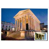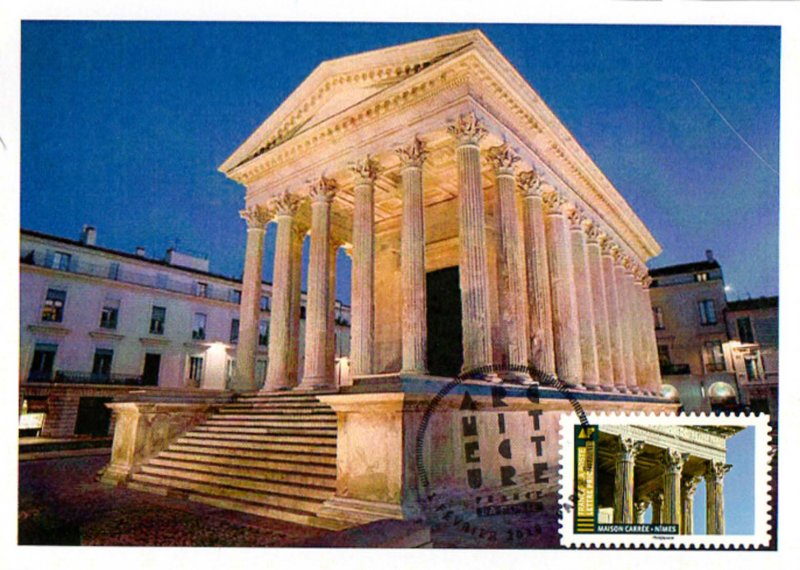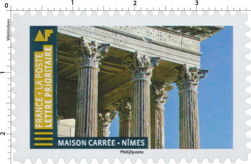 | Commentaire | Architecture : la Maison Carrée mesure 26,42 m de long, 13,54 m de large et 17 m de haut, elle est entourée de 30 colonnes cannelées de 9 m de haut, aux chapiteaux ornés de feuilles d'acanthe. Elle est donc de forme rectangulaire... (l'appellation "Maison Carrée" date du XVIème siècle, époque à laquelle un rectangle est désigné comme un "carré long"). Le temple, édifice hexastyle corinthien (temples grecs dont la façade bénéficie d'un portique à six colonnes), est bâti sur un podium, des colonnades font le tour de l'édifice. Les colonnes du "pronaos" (vestibule) sont libres, celles de la "cella" (pièce principale du sanctuaire) sont intégrées au mur (plan pseudo périptère - rangées de colonnes sur toutes ses faces). Pour accéder à l'édifice, un escalier de 15 marches même au vestibule, et une haute et large porte donne accès à la pièce principale. L’entablement et les chapiteaux des colonnes qui le soutiennent, bénéficient d'une composition comprenant une architrave (ou épistyle) divisée en trois bandeaux et ornée d’une frise à rinceaux (motifs végétaux, complétés par la présence de 5 oiseaux sur la partie Ouest). Le temple portait sur son frontispice, inscrite en lettres de bronze scellées dans la pierre, une inscription expliquant le rôle de l'édifice : "À Caius Caesar consul et Lucius Caesar consul désigné, fils d'Auguste, princes de la jeunesse". La Maison Carrée fait l’objet d’un classement au titre des M.H. sur la liste de 1840. En savoir plus sur Wikipédia : Maison Carrée |