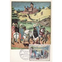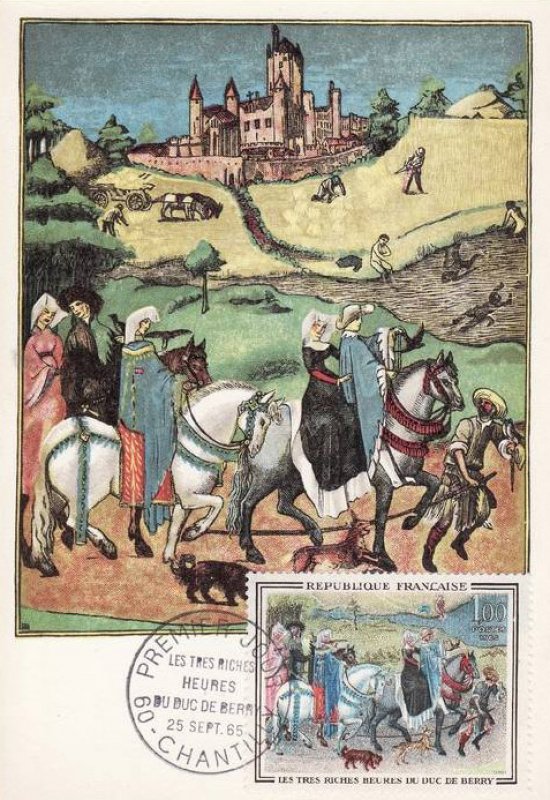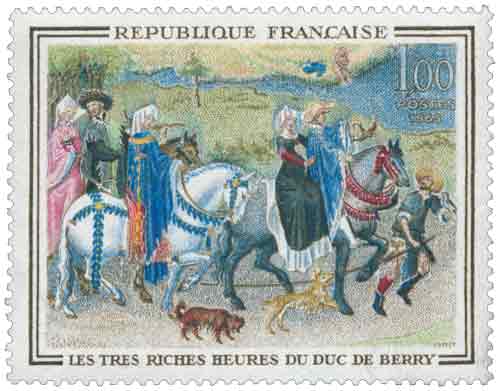 | Commentaire | En savoir plus sur Wikipédia : Les Très Riches Heures du duc de Berry « Les Très Riches Heures du duc de Berry » est un livre commandé par le duc de Berry aux frères Paul, Jean et Herman de Limbourg vers 1410-1411. Terminé en 1486. Il y a des livres qui se lisent, et d’autres qui se contemplent comme un vitrail. Les Très Riches Heures du duc de Berry appartiennent clairement à la seconde catégorie. Commandé vers 1411 par Jean de France, duc de Berry — un prince un brin cruel mais passionné d’art — ce manuscrit d’apparat est l’un des joyaux absolus de l’enluminure médiévale. Pour l’exécuter, il fait appel à trois frères originaires de Flandre, les Limbourg, miniaturistes de génie. Le projet est colossal : illustrer l’année liturgique, les heures canoniales, mais aussi la vie de cour, les travaux des champs, les saisons... Bref, une fresque du quotidien et du sacré, vue par des peintres qui avaient le sens du détail et celui du merveilleux. Chaque mois est une scène à part entière. Août, par exemple (celui choisi pour le timbre), c’est une chasse à courre menée par des nobles élégants, tandis qu’au fond, les paysans piquent une tête dans la rivière. Un double monde, réuni dans la même image — hiérarchie sociale à peine masquée, mais coexistence harmonieuse. Et toujours, ce soin dans les drapés, les ombres, les architectures (tiens, on reconnaît même le château d’Étampes au loin). Mais l’histoire ne s’arrête pas là. Le manuscrit, inachevé à la mort du duc en 1416, est repris bien plus tard par Jean Colombe au service du duc de Savoie. Moins inspiré, certes, mais respectueux. Aujourd’hui, il dort à Chantilly, au musée Condé, dans une salle à l’éclairage tamisé où le temps semble suspendu. Ce qui frappe, c’est à quel point ce livre, pourtant vieux de six siècles, reste vibrant. Il mêle la précision du regard flamand à l’élan des premiers paysages italiens. Un pas vers la Renaissance, dirait Anatole France. Ou plus simplement : un livre que le monde n’a jamais vraiment cessé d’admirer. WikiTimbres |