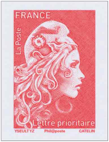 | Description | Marianne lettre prioritaire 20 grs rouge TVP provenant du coffret de 10 feuillets non dentelé |