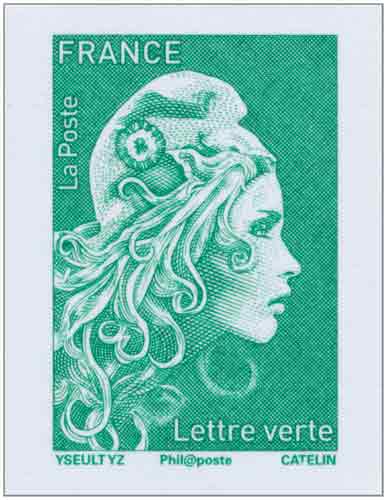 | Description | Marianne lettre verte TVP / provenant du coffret de 10 feuillets non dentelé |