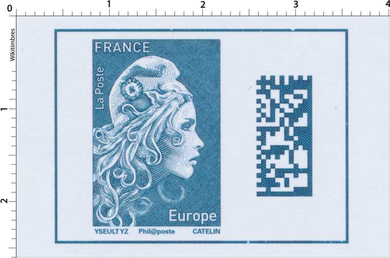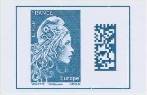 | Description | Marianne lettre Europe 20 grs datamatrix TVP provenant du coffret de 10 feuillets non dentelé |