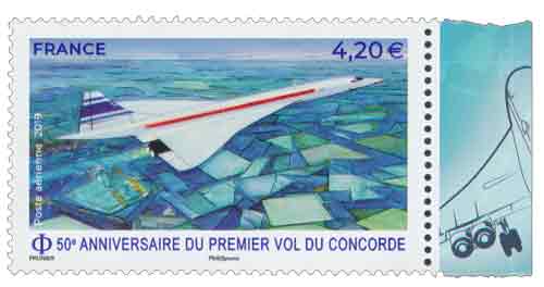 | Description | Émission dans la série Poste-aérienne, d'un timbre pour fêter le 50e anniversaire du premier vol du Concorde. |