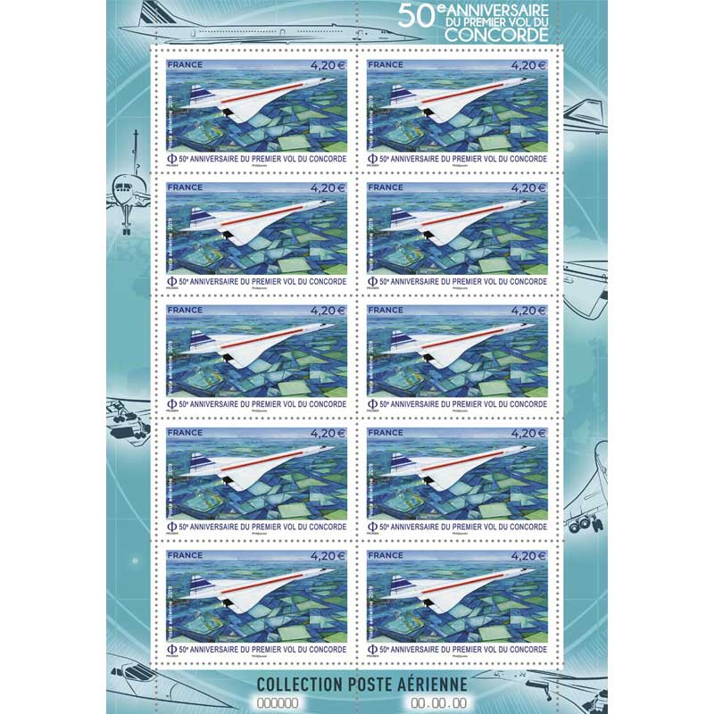 | Description | Émission dans la série Poste-aérienne, d'un timbre pour fêter le 50e anniversaire du premier vol du Concorde. |