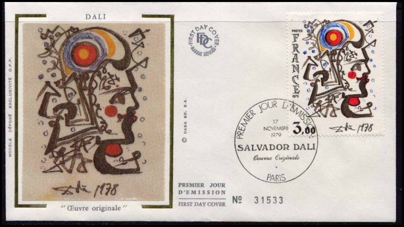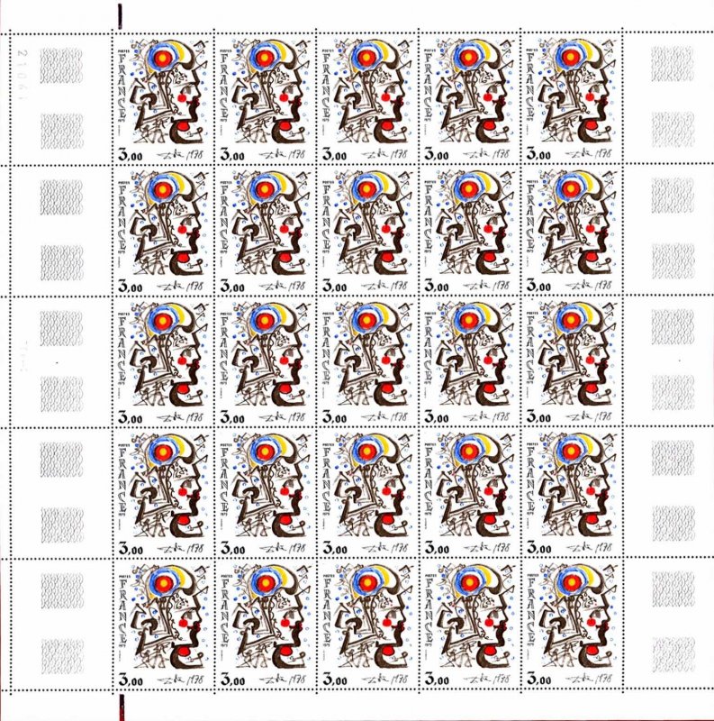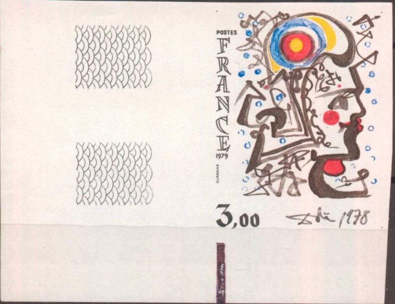 | Commentaire | En savoir plus sur Wikipédia : Salvador Dalí Cette « création philatélique» est une originale d'un artiste qui est sans doute parmi les peintres actuels l'un des plus célèbres du monde. Salvador Dali donne ici son interprétation personnelle de ce qu'il appelle un « mythe-signe»: c'est une Marianne juvénile, coiffée d'un bonnet phrygien à cocarde. |