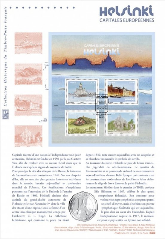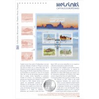 | Commentaire | L'histoire de la Finlande est caractérisée par la lutte d'influence que se sont livrés ses deux grands voisins, le royaume de Suède et la Russie. La Finlande est originellement peuplée par le peuple finnois au Sud et par les Samis (en Sápmi, région de Laponie). Au Moyen-âge, le grand-duché de Finlande est colonisé par la Suède dans ce que l'on appelle la Suède-Finlande (Ruotsi-Suomi). En 1809, la Suède doit céder la Finlande à la Russie. La Finlande n'accède finalement à l'indépendance qu'après la révolution russe de 1917. Le 6 déc.1917, profitant du désordre causé par la révolution Bolchévique, la Finlande déclare son indépendance. Le 30 avril 1918, un débat a lieu entre les partisans de l'instauration d'une république et les tenants de l'instauration d'un régime de type monarchie constitutionnelle. Le 17 juil. 1919, l'Allemagne étant vaincu, la République est proclamée, mettant ainsi un terme au Royaume de Finlande, proclamé en 1918, suite à la victoire allemande en Russie. En savoir plus sur Wikipédia : Helsinki |