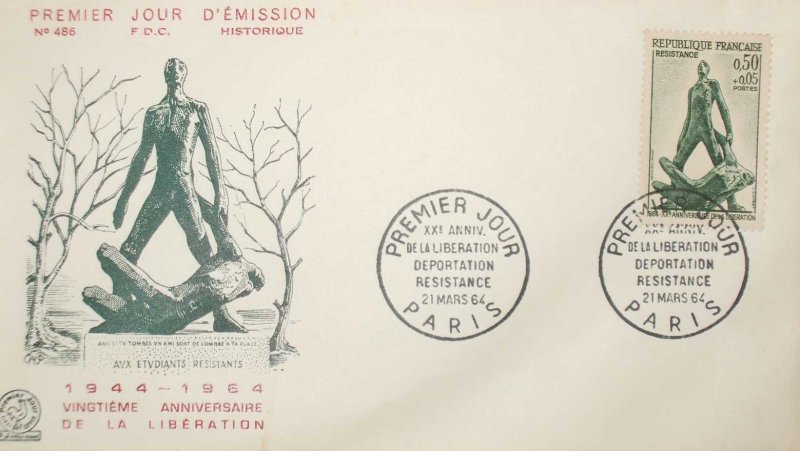 En 1964, pour les vingt ans de la Libération, la France décide de ne pas laisser le souvenir s’effriter comme un vieux papier jauni. À travers une série de timbres, elle rend hommage à deux forces qui, dans l’ombre et la douleur, ont tenu debout l’âme du pays : la Résistance et la Déportation. Le premier timbre nous ramène au Jardin du Luxembourg, où s’élève une statue discrète mais bouleversante, née du ciseau de Watkin, lui-même ancien résistant. Deux jeunes figures : l’une debout, l’autre qui s’effondre... Et ce bras, tendu comme un ultime refus de la chute. Ce monument n’est pas juste une pierre froide : c’est un cri silencieux, une main tendue à ceux qui, en 1944, ont choisi de mourir plutôt que de trahir. (Tu t’es déjà demandé ce que c’est, "ne pas abdiquer" ?) À côté, un autre timbre nous cloue sur place : la Déportation. Difficile d’imaginer l’horreur derrière un simple mot. Camps, barbelés, miradors. Et pourtant, au milieu de cette mécanique de mort, il restait une étincelle : l’espoir. Ceux qui sont revenus — maigres, brisés, mais vivants — portaient en eux plus qu’une victoire, ils portaient une leçon. Même l’enfer n’a pas pu tout détruire. Cette série commémorative n’est pas là pour qu’on se glorifie ou qu’on pleure en boucle. Elle est là, discrètement posée sur nos lettres, pour qu’on se souvienne. Que chaque jeune, chaque passant, se rappelle que la liberté a eu, et aura peut-être encore, un prix. Un prix qu’il faut regarder en face, même si ça dérange. WikiTimbres