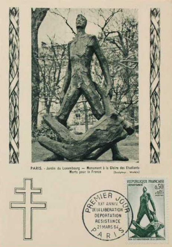 La résistance est ici symbolisée par le "mémorial aux étudiants résistants" qui a été élevé dans le Jardin du Luxembourg grâce au produit d'une souscription nationale ouverte en 1951 dans toutes les écoles de la France métropolitaine et d'Outre-Mer.