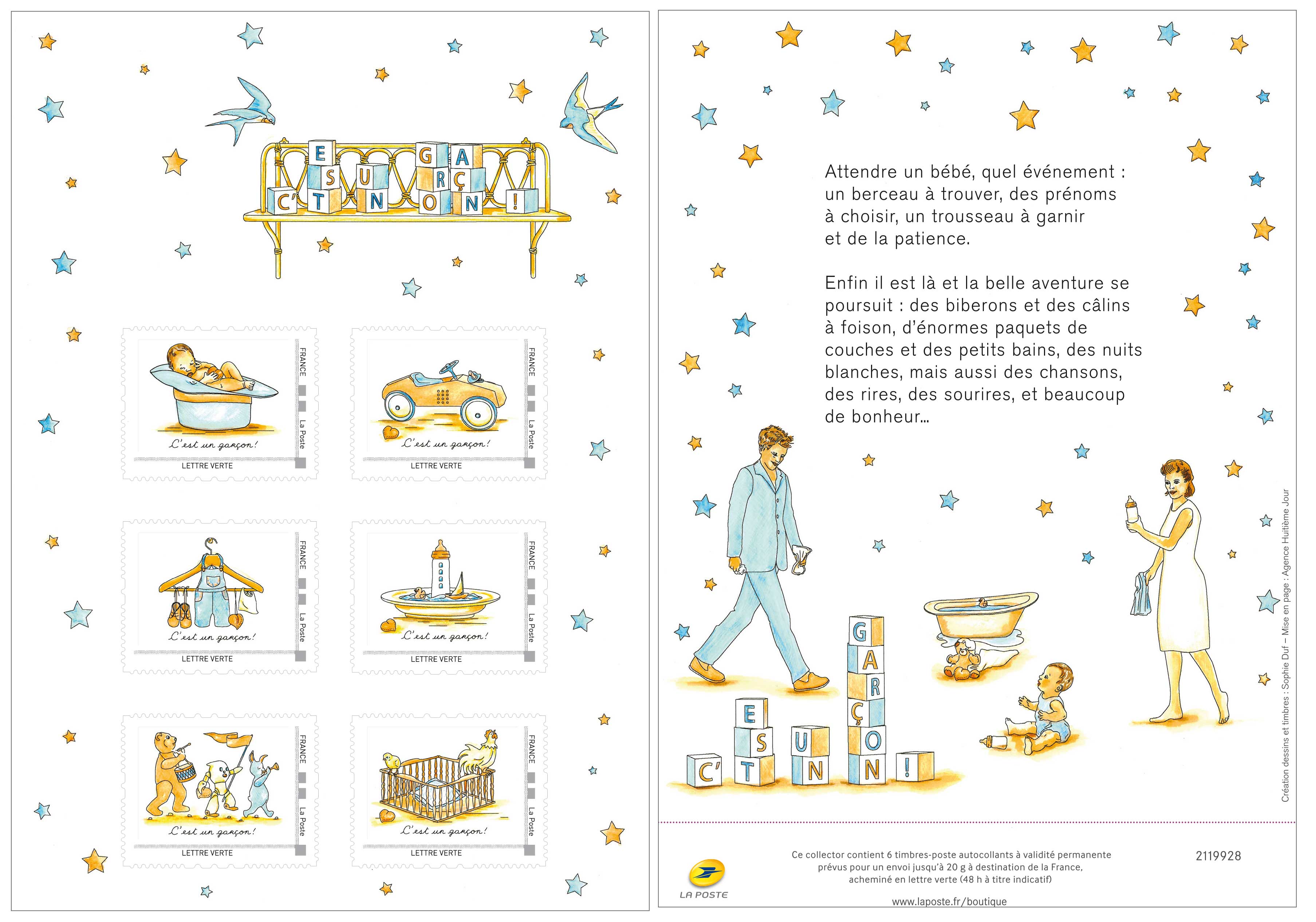 | Description | Deux collectors 6 timbres – Lettre Verte - C’EST UNE FILLE ! C’EST UN GARCON ! |