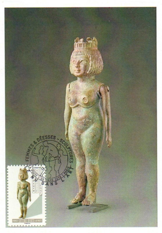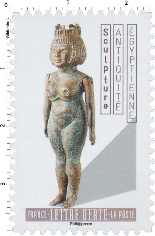 | Commentaire | Sculpture - Antiquité Égyptienne - photo © RMN-Grand Palais (musée du Louvre) / Franck Raux. L'œuvre présentée : une statuette de femme nue, coiffée d'une couronne - XXVème dynastie, vers 780-656, avant J.-C. - bronze - sculpture en incrustation - Ht. 30 cm x larg. 10 cm. |