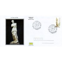 | Commentaire | Sculpture - Antiquité Grecque - photo © RMN-Grand Palais (musée du Louvre) / Hervé Lewandowski L'œuvre présentée : Aphrodite, dite Vénus, déesse de Milo - sculpture créée vers 150 à 130, avant J.-C. - période hellénistique (323 à 31 avant J.-C.) - originaire de l'île de Mélos - sculpture en marbre (Ht. 202 cm x larg. 36 cm x 64 cm), un don du marquis de Rivière, ambassadeur de France à Constantinople, sous Louis XVIII, en 1820-21. C'est une statue en marbre, de la déesse Aphrodite, retrouvée sans ses bras. Elle a été exposée au musée du Louvre en 1821, et à fait sensation, car elle était la première statue venue de Grèce pour les collections, et la première à être montrée incomplète. Sa célébrité est due à la grande beauté de son corps, à demi dénudé, mais aussi à la mutilation de ses bras. |