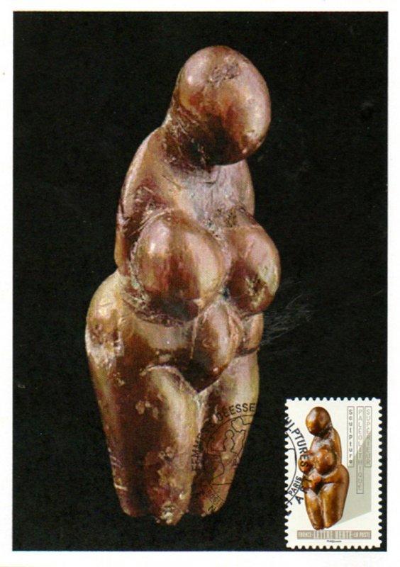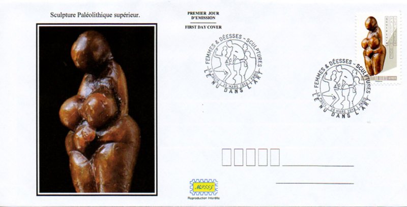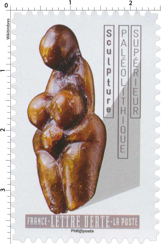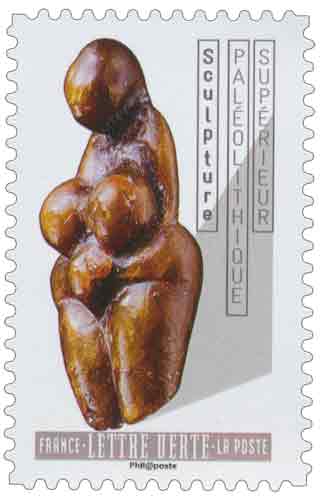 | Commentaire | Sculpture - Paléolithique supérieur - photo © RMN-Grand Palais (musée d’archéologie nationale) / Jean-Gilles Berizzi L'œuvre présentée : statuette en stéatite, dite "Vénus" stéatopyge ambrée de la "grotte des Balzi Rossi", ou "grotte de Grimaldi" - vers 25 000 av. J.-C.- paléolithique supérieur, Gravettien du site : la "Barma Grande" (environ de Menton) - Ht. 4,7 cm x larg. 2 cm x prof. 1,2 cm - lieu de conservation : Saint-Germain-en-Laye, musée d'Archéologie nationale. Fiche technique : 02/06/2010 - Retrait : 28/05/2011 - Série Emission Commune : France - Monaco - Centenaire de l'Institut de Paléontologie Humaine - Paris 1910-2010. |
