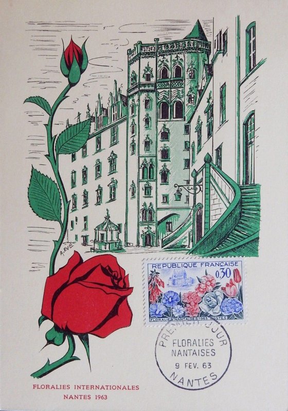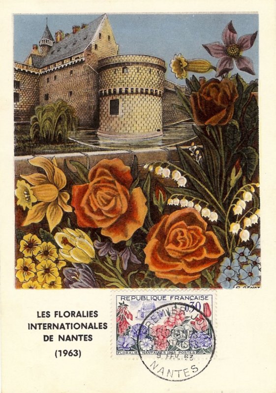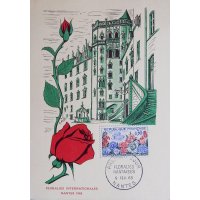 | Commentaire | En savoir plus sur Wikipédia : Floralies Internationales - Nantes On pense souvent que le béton et l'acier ont tout envahi, laissant la nature sur le bas-côté... Pourtant, à Nantes, en 1963, une grande idée germe : les Floralies internationales. Imagine une ville, au bord de la Loire, décidant de se couvrir de fleurs, d'arbustes, d'arbres — comme une immense respiration verte au milieu du monde moderne. À vrai dire, tout ça n’arrive pas par hasard. Déjà en 1956, les premières Floralies avaient cartonné. Les gens, étouffés par la vie urbaine, avaient soif de beauté, de fraîcheur. Eh bien, ils vont être servis : du 27 avril au 6 mai 1963, Nantes rouvre grand ses bras à la nature, avec plus de vingt pays invités, des expos géantes, et même un espace scientifique pour discuter plantes et avenir. (<!-- j’aurais adoré y aller... -->) Franchement, 70 000 m⊃2; d’esplanade, des serres couvertes, un plan d’eau aménagé... la ville se transforme carrément en jardin géant. Il semble que ce projet ait aussi porté un autre message, plus discret : celui de la décentralisation. Car Nantes, en pleine expansion, vient d'ouvrir son université — un signe fort que le développement économique ne doit plus tourner uniquement autour de Paris. Et tiens, en passant, c’est aussi la première fois qu’une telle manifestation ose autant marier fleurs, sciences, architecture et politique régionale... sans jamais en avoir l’air ! On pourrait dire que ces Floralies, au fond, ressemblaient à un souffle d’optimisme : un petit coin de paradis fleuri pour rappeler aux gens qu’au milieu du bruit et du béton, la beauté avait encore toute sa place. WikiTimbres |