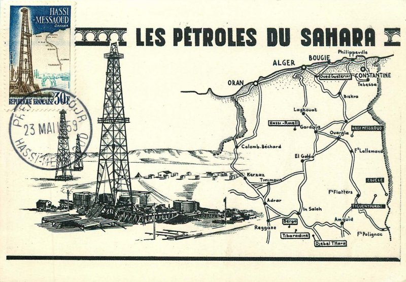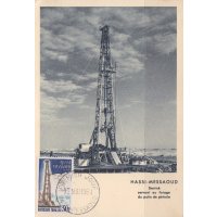 | Description | Réalisations techniques. Hassi-Messaoud, Sahara - Puits de pétrole et dessin du pipe-line jusqu'à Bougie en Algérie |