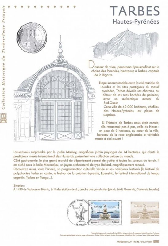 | Description | Émission dans la série touristique, d'un timbre sur la ville de Tarbes |