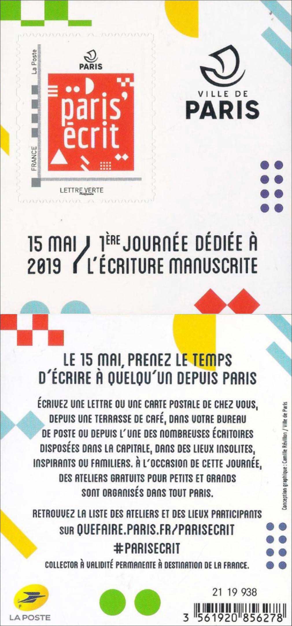 | Description | Émission d'un collector pour la Ville de Paris à l’occasion de la première journée dédiée à l’écriture manuscrite |