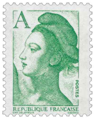 La modification des tarifs postaux entraîne l'émission, le 1 août 1986, d'un timbre-poste de la série courante "République, type Liberté" de couleur verte, dont la valeur faciale est représentée par la lettre A. Cette valeur est égale à 1,90 F, nouveau tarif du premier échelon de poids des plis non urgents.