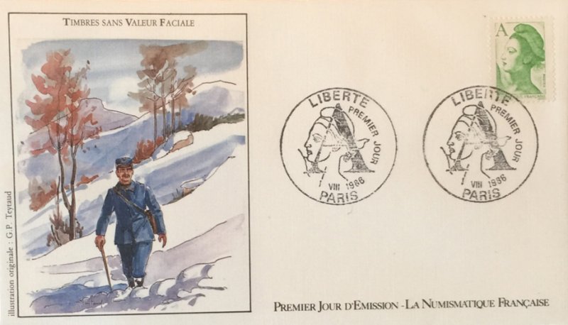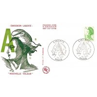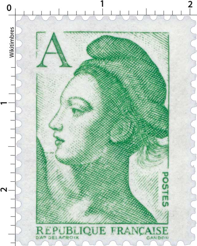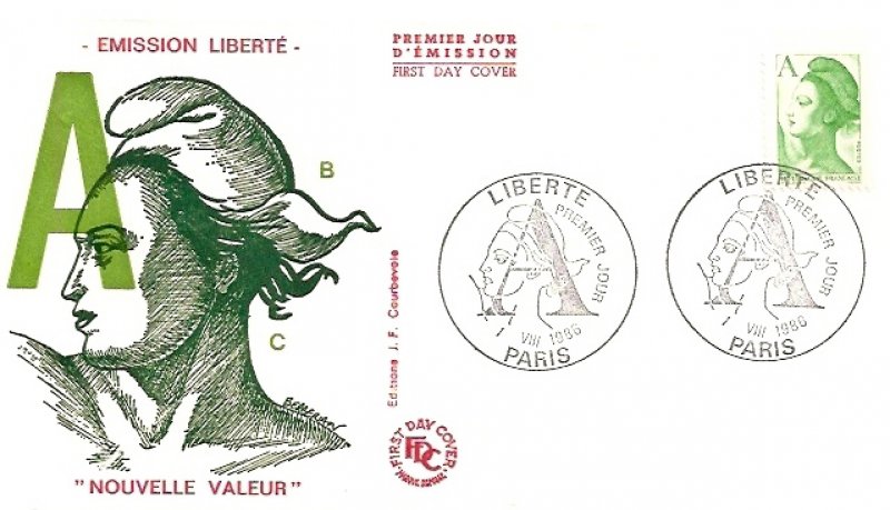 La modification des tarifs postaux entraîne l'émission, le 1 août 1986, d'un timbre-poste de la série courante "République, type Liberté" de couleur verte, dont la valeur faciale est représentée par la lettre A. Cette valeur est égale à 1,90 F, nouveau tarif du premier échelon de poids des plis non urgents.