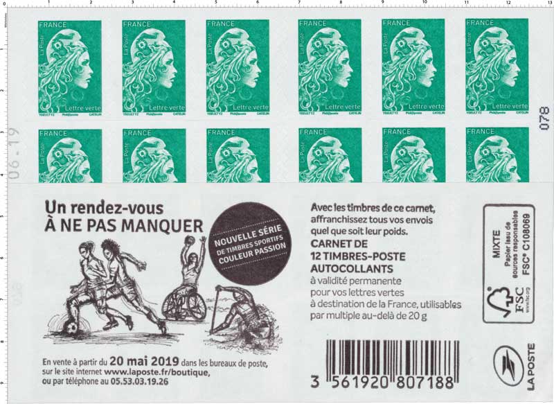 | Description | Carnet de 12 timbres lettre verte |