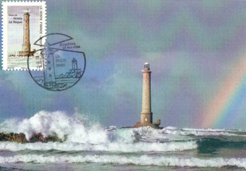 | Commentaire | Phare de la Hague ou phare de Goury (50-Manche) - Classé MH le 11/05/2009 + se visite. C'est le premier phare français construit sur un rocher d'à peine 10 m de rayon, dit le "Gros-du-Raz". Il est isolée en mer et signale le "Raz Blanchard", l'un des courants de marée les plus forts d'Europe (jusqu'à 12 nœuds, soit 22 km/h aux grandes marées d'équinoxe), à l'entrée Nord du passage de la Déroute (détroit situé à l'extrémité septentrionale du golfe de Saint-Malo) entre le cap de La Hague-Goury (à 800m) et l’île d’Aurigny (Alderney, bailliage de Guernesey, îles Anglo-Normandes). Après de multiples naufrages à l'abord du Raz Blanchard, il a été décidé d'édifier ce phare au large d'Auderville et du port de Goury. En savoir plus sur Wikipédia : Phare de Goury |