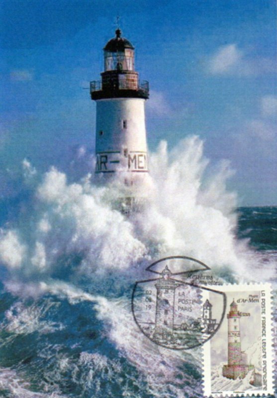 | Commentaire | Le phare d’Ar-Men ("la pierre", surnommé l'Enfer des enfers - 29-Finistère) c'est un phare en mer construit à l'extrémité de la chaussée de Sein, à la pointe Ouest de la Bretagne. - Classé MH le 31/12/2015 Ce phare a était nécessaire, à la suite de plusieurs naufrages dans cette zone, en particulier celui de la Corvette à aubes "Le Sané", nom d'un ingénieur maritime (1847-1859, avarie de barre) dans la nuit du 23 au 24 sept.1859 En savoir plus sur Wikipédia : Phare d’Ar-Men |