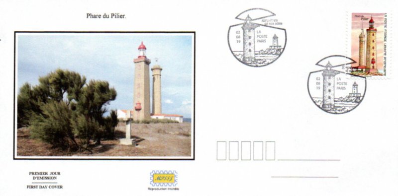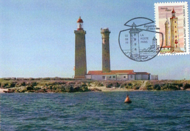 | Commentaire | Le phare du Pilier, sur l'île du Pilier - pointe Nord de Noirmoutier-en-Ile (85-Vendée) protection des abords Sud de l'estuaire de la Loire. - le site est protégé - Classé MH le 03/10/2012. Premier phare : de 1827 à mai 1828, construction d'une tour cylindrique en maçonnerie de pierre de taille - mise en service en fév.1829 - haute de 29,50 m (32,50 m au-dessus de la mer) sur un soubas- sement carré. Elle est équipée d'un feu fixe blanc, toutes les 4 mn par des éclats précédés et suivis de courtes éclipses. De 1861 à 1866, restauration de la tour et construction des dépendances. En 1870, modification de la lanterne pour recevoir un brûleur au pétrole, mais la chaleur dégagée est telle que les soudures de la lanterne fondent et nécessite la construction d'une nouvelle tour. En savoir plus sur Wikipédia : Phare du Pilier |