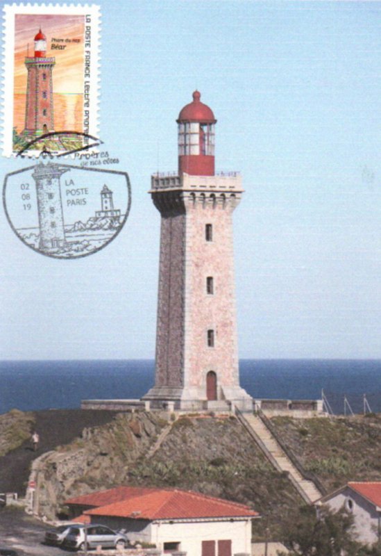 | Commentaire | Le phare du Cap Béar : le phare actuel a remplacé un feu fixe sur le mont Béart, au Sud-Est de Port-Vendres (66-Pyrénées-Orientales) - Classé MH le 09/10/2012. Première tour : en mai1836, un feu était établi à une altitude de 210m, sur la colline Béar. Une petite tour cylindrique, sur soubassement, de 9 m de hauteur, Au sommet, une lampe à huile placée au foyer d’un miroir parabolique en métal argenté. Le service était assuré par 3 gardiens de quart la nuit, assurant son entretien le jour. Ce feu d’une portée de 10 lieues marine (30 milles ou 48 km) par temps clair ; situé en retrait de la côte, il avait une visibilité aléatoire par temps de brume. Nouveau phare : en 1905, à l’extrémité du Cap Béar, sur une plateforme rocheuse située à 79 m d’altitude, est construit un phare à éclipse. En savoir plus sur Wikipédia : Phare du cap Béar |