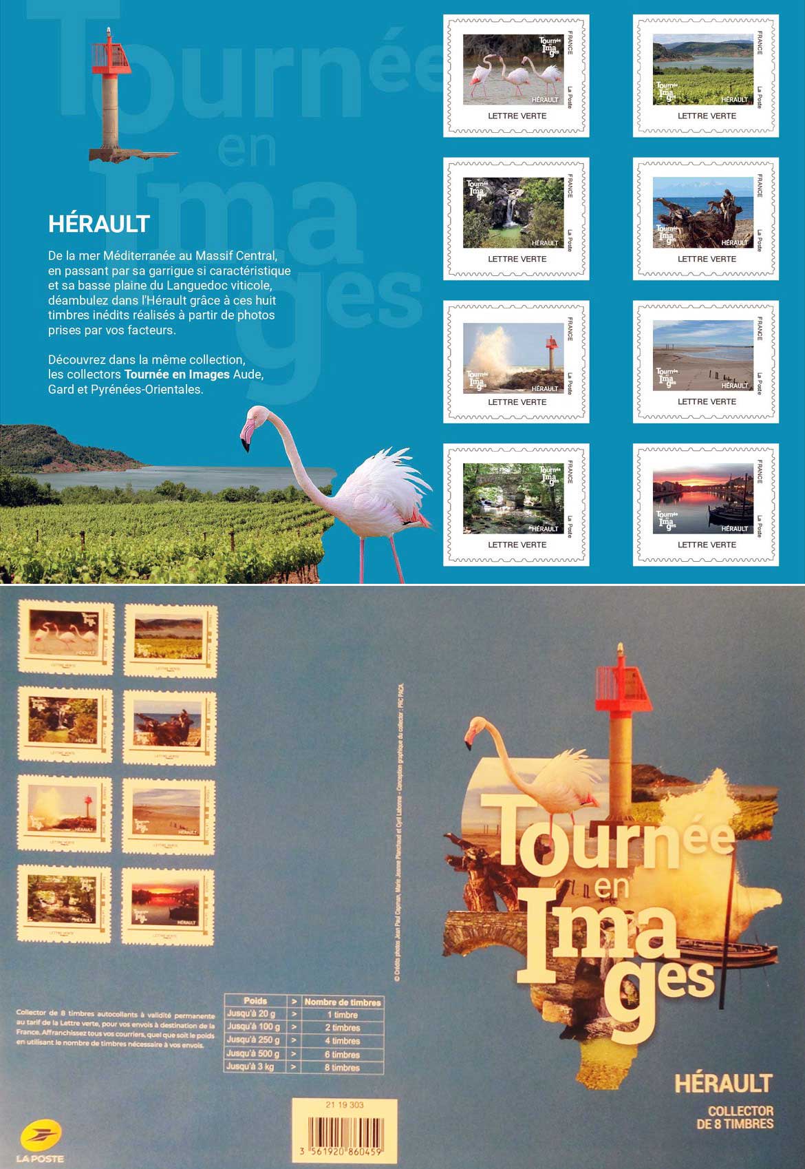 | Description | Collector : TOURNÉE EN IMAGES - HÉRAULT- Les timbres ont été réalisés à partir de photos prises par les facteurs. |