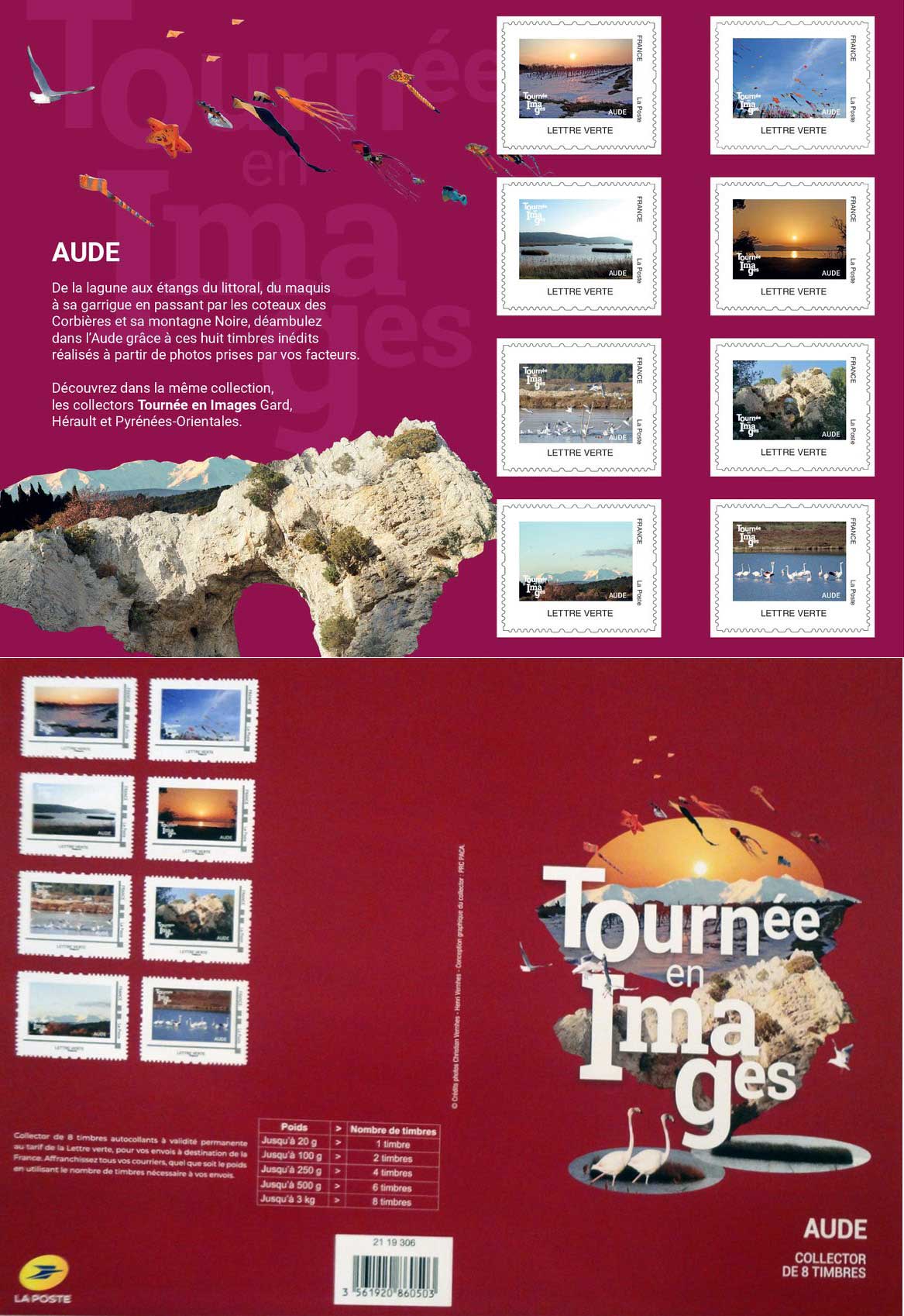 | Description | Collector : TOURNÉE EN IMAGES - AUDE- Les timbres ont été réalisés à partir de photos prises par les facteurs. |