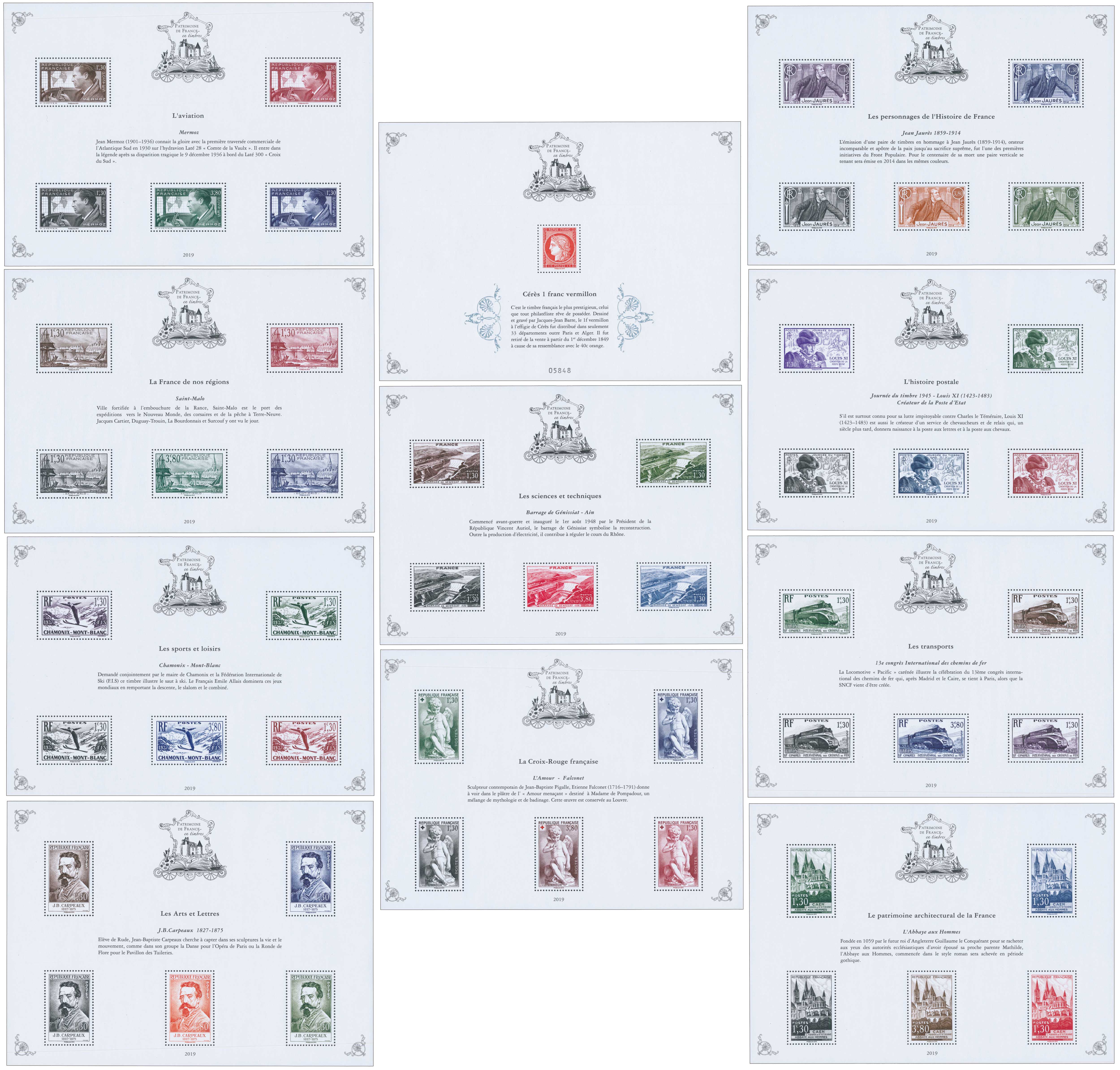 | Commentaire | Valeurs faciales des feuillets : 3,80 € au centre et 1,30 € pour les 4 autres timbres-poste, soit 9 € au total Soit 10 feuillets à 9 euros + feuillet Cérès vermillon de 1 € offert Contrairement aux "Trésors de la philatélie" cette nouvelle série "Patrimoine de France" aura un tirage plus limité : 10 000 ex au lieu de 15 000 ex précédemment