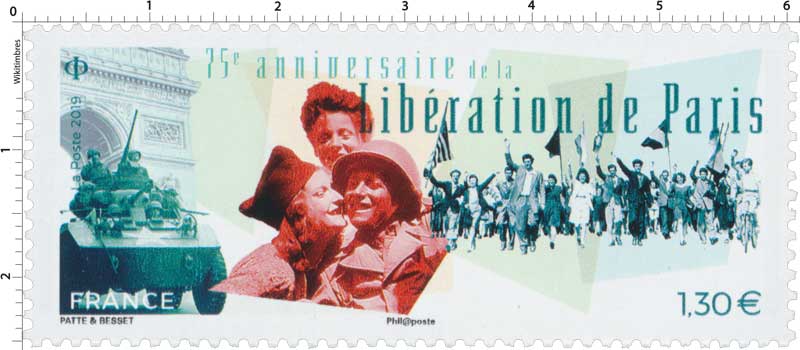 | Commentaire | L'année 2019 marque le 75e Anniversaire de la Libération de la France. Du Débarquement en Normandie, le 6 juin 1944, jusqu’à la signature solennelle de l'Acte de Capitulation, le 8 mai 1945 à Berlin, l’action conjointe des Armées Alliées et de la Résistance française, permet à la France de recouvrer sa Liberté. La Libération de la Capitale, durant la Seconde Guerre mondiale, a eu lieu du 19 au 25 août 1944, marquant ainsi la fin de la bataille de Paris. Cet épisode a lieu dans le cadre de la Libération et met un terme à quatre années d'occupation de la capitale française. En savoir plus sur Wikipédia : Libération de Paris |