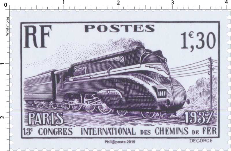| Commentaire | Visuel : Super Pacific Nord 3.1280 (future 231 C 78) - série de 40 machines étudiées par l'ingénieur Marc De Caso, lancée en 1931 aux ateliers Cail de Denain, elle appartenait à la Compagnie des Chemins de fer du Nord gérée par la famille Rothschild, avec pour livrée, la couleur "Chocolat / ivoire" (locomotive et wagons). En 1937, il fut rajouté un "carénage aérodynamique", que la SNCF supprima durant la Seconde Guerre mondiale.