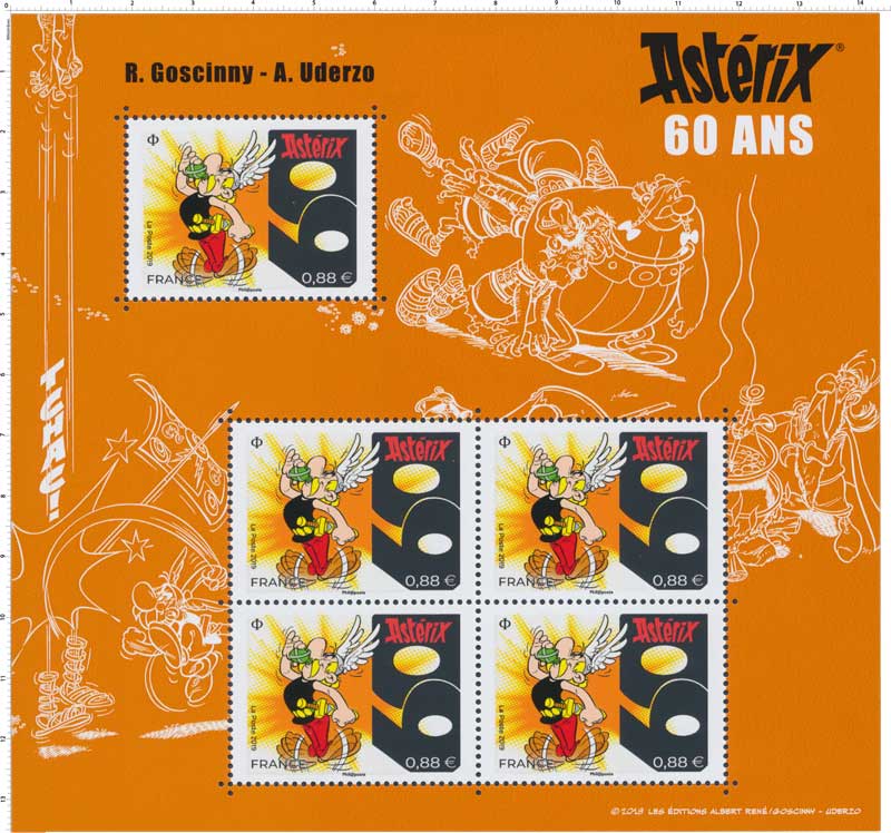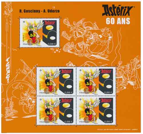 | Description | Bloc de 5 timbres pour fêter les 60 ans d'Astérix et les 30 ans du parc Astérix |