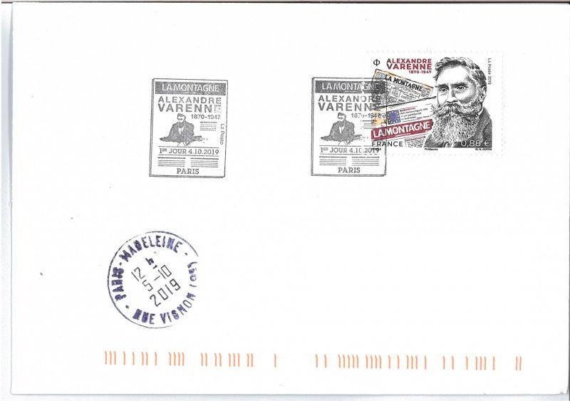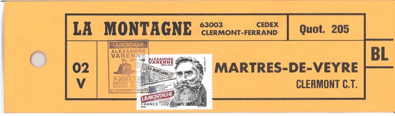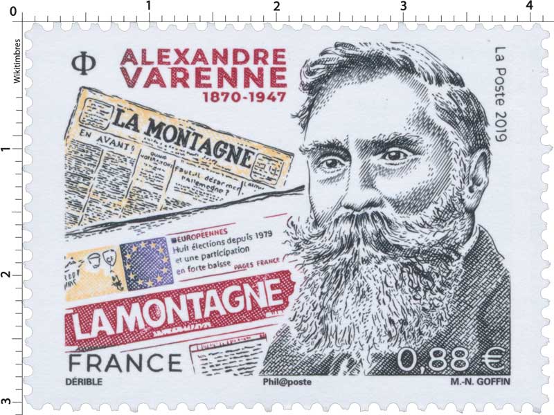 | Description | Émission d'un timbre à l’effigie d’Alexandre Varenne, fondateur du journal « La Montagne ». |