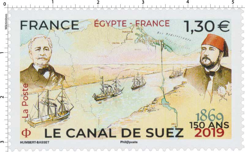 | Description | Émission commune avec La Poste égyptienne d'un timbre pour les 150 ans du canal de Suez |