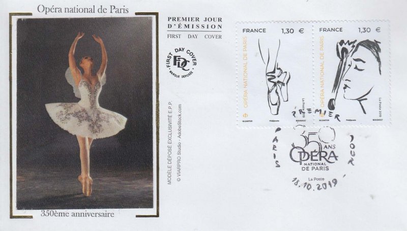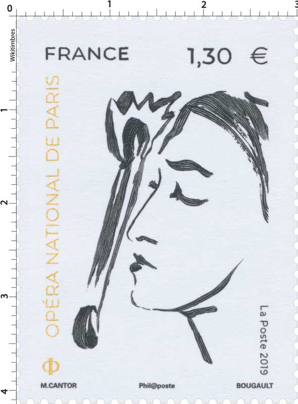 | Description | Provenant du bloc de de deux timbres (Lettre International) qui célèbre les 350 ans de l’Opéra national de Paris |