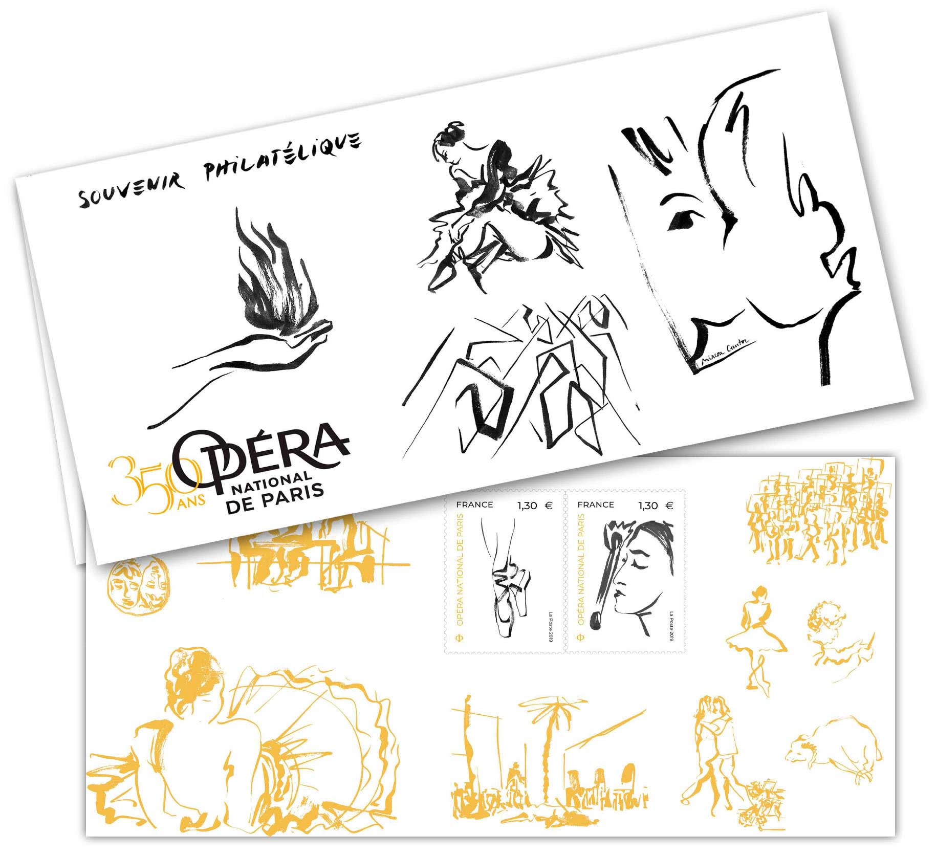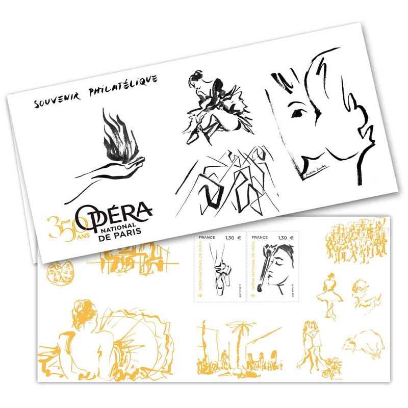 | Description | Souvenir philatélique comprenant un bloc de deux timbres (Lettre International) qui célèbre les 350 ans de l’Opéra national de Paris |