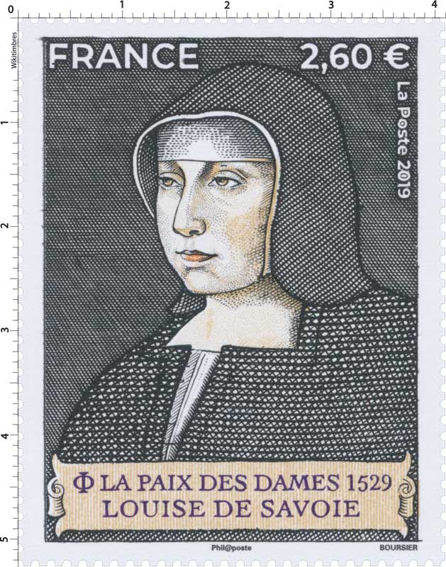 | Description | Provenant du bloc : Louise de Savoie, mère du roi de France François 1er, et Marguerite d'Autriche, tante de l'empereur Charles Quint. Leurs portraits illustrent les timbres du bloc |