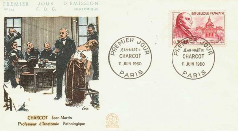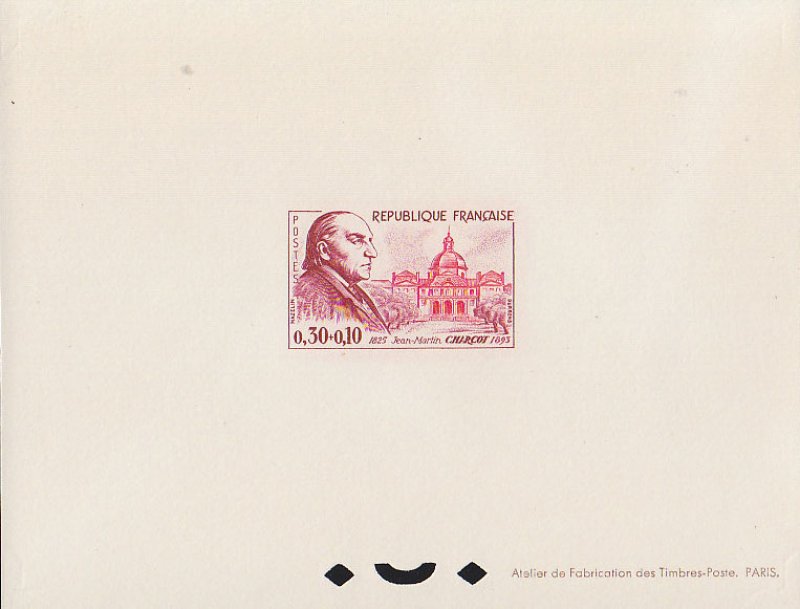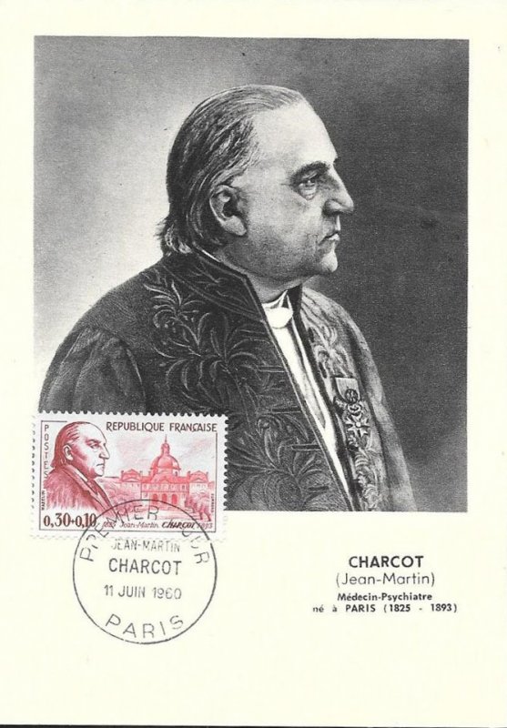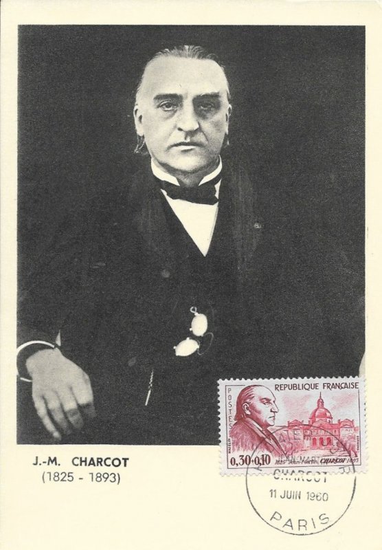 | Commentaire | En savoir plus sur Wikipédia : Jean-Martin Charcot Le nom de CHARCOT est bien connu, autant par la renommée de Jean Martin CHARCOT, médecin célèbre (représenté de profil sur le timbre ci-dessus) que par celle de son fils, médecin aussi et explorateur des zones polaires, disparu au cours du naufrage du navire "Pourquoi-Pas". (commémoré par plusieurs timbres) |