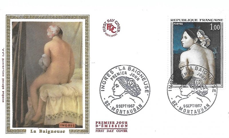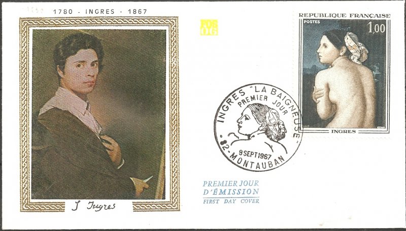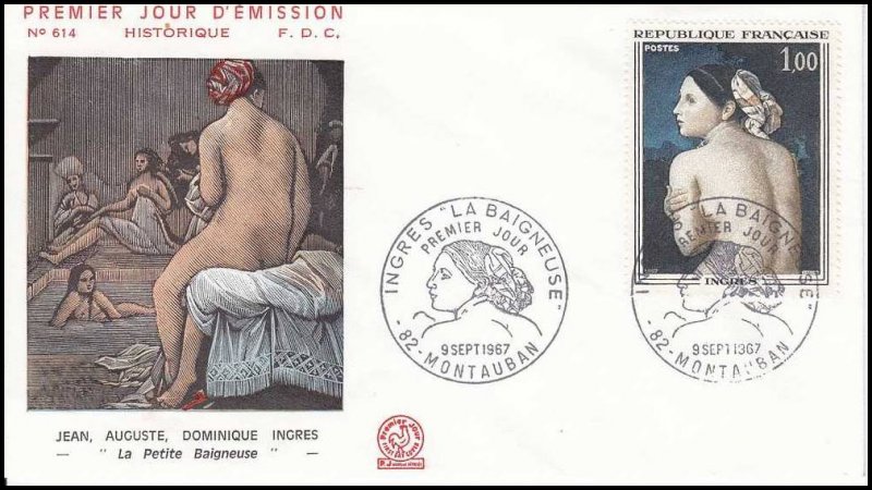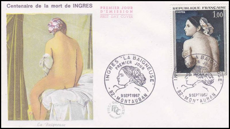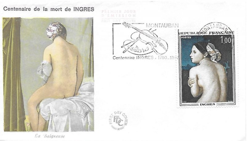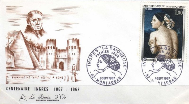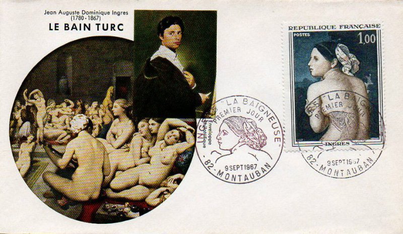 | Commentaire | En savoir plus sur Wikipédia : Jean-Auguste-Dominique Ingres En savoir plus sur Wikipédia : La Baigneuse Valpinçon Ce timbre reprend le tableau "La baigneuse", dite Baigneuse Valpinçon (nom d'un de ses anciens propriétaires) Tu crois connaître Ingres ? Eh bien accroche-toi : ce peintre-là, derrière ses airs sages et ses lignes parfaites, était un passionné pur jus. Obsédé par le dessin, allergique au flou. Né en 1780 à Montauban (une petite ville au charme discret, pas franchement le Bronx), il aurait pu devenir violoniste… si son père, peintre un peu touche-à-tout, n’avait perçu ce regard – tu sais, celui qui dévore les formes. À 10 ans, il croque déjà comme un pro. À 20, il débarque à Paris dans l’atelier de David, le pape du néoclassicisme. Il décroche le Prix de Rome, bosse comme un acharné, et à Rome justement, il tombe amoureux... de la Renaissance italienne. Il restera là-bas bien plus longtemps que prévu. Entre deux commandes de portraits (souvent pour des clients trouvés… par son barbier ! oui oui), il ponce les grands maîtres. Son “Odalisque” choque à Paris – trop allongée, trop bizarre – mais lui s’en fout : il a sa vision. Revenu en France, il devient le grand chef du camp des Classiques, face aux Romantiques menés par Delacroix. Ambiance électrique. Ingres, lui, vénère la ligne, méprise Rubens (qu’il interdit à ses élèves de regarder... carrément), et s’accroche à une idée : l’art, c’est l’harmonie, pas le chaos. Côté caractère, un peu soupe au lait, mais franchement entier. "La Baigneuse", que le timbre met à l’honneur, c’est typiquement lui : un nu élégant, maîtrisé, presque silencieux. Un corps à la fois vrai et irréel. Tiens, anecdote : son dernier tableau, “Le Bain turc”, a été jugé trop érotique pour être montré tel quel. Il a dû le retoucher à 80 ans. Pas mal pour un vieux monsieur. Entre rigueur et poésie, Ingres a tracé son propre chemin. Et il continue, mine de rien, à inspirer ceux qui aiment voir clair dans le beau. WikiTimbres |
