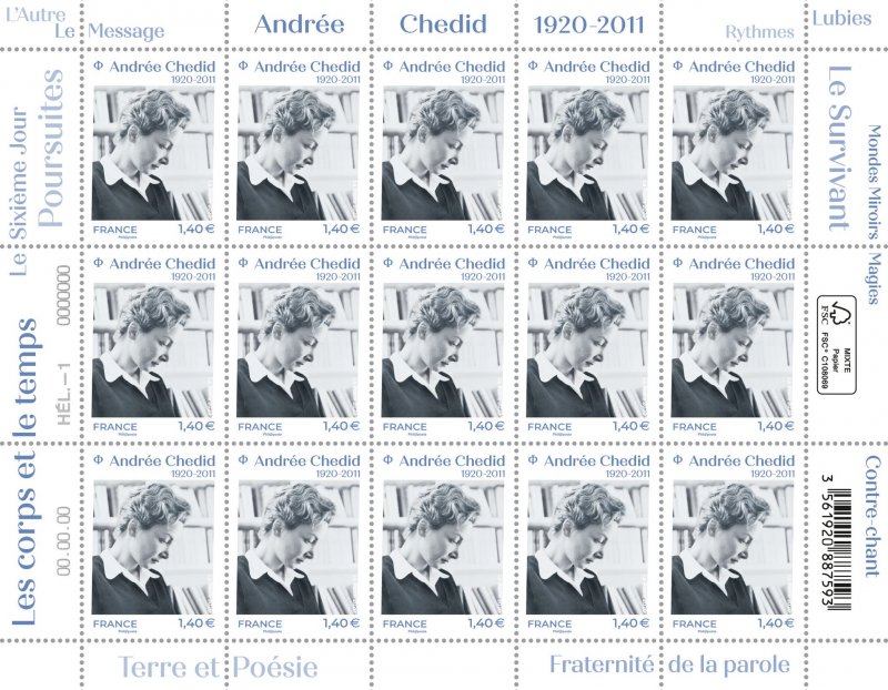 | Description | A l’occasion du centenaire de la naissance d'Andrée Chedid (1920 - 2011), femme de lettres et poétesse française d’origine syro-libanaise |