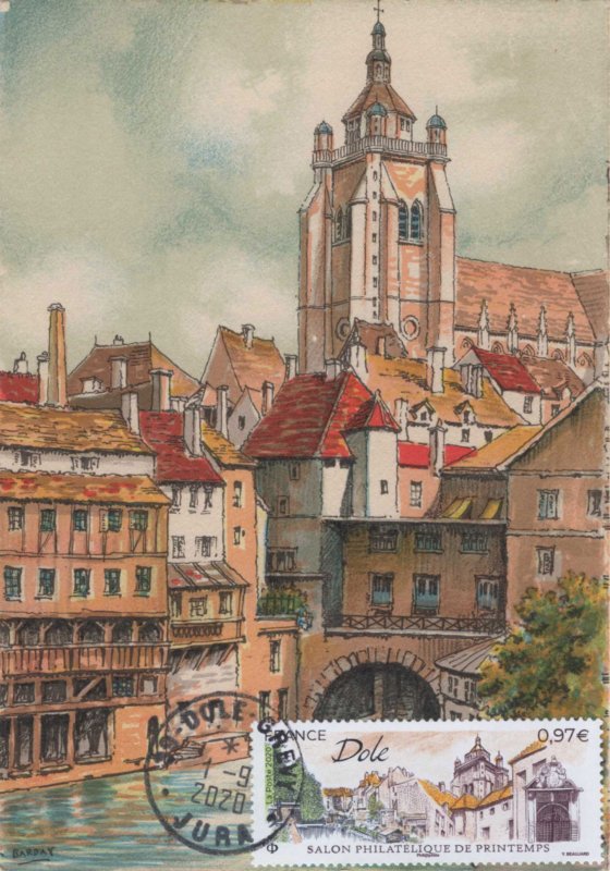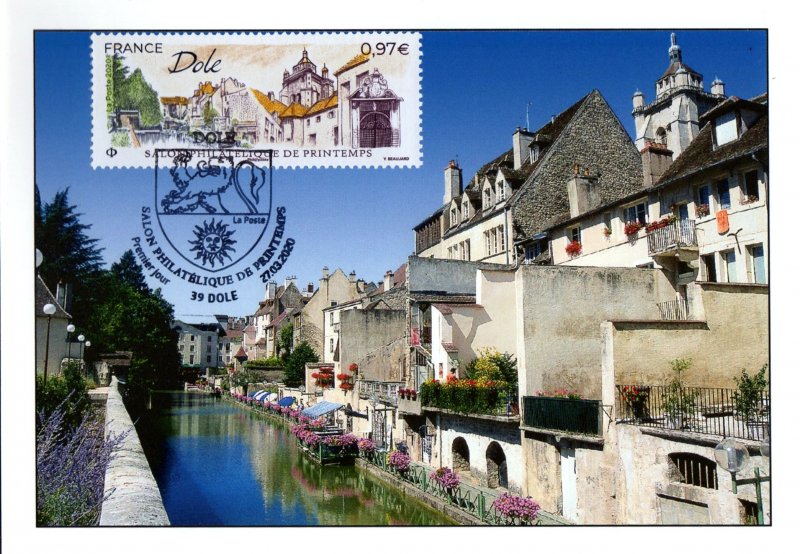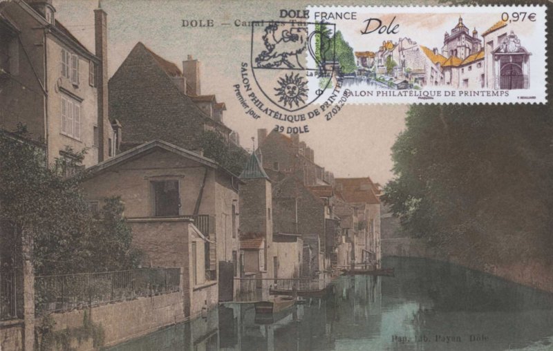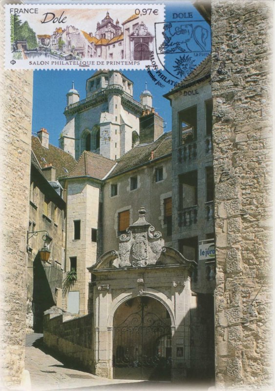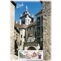 | Commentaire | Visuel : il représente une synthèse des lieux emblématiques de la vieille ville, dont le dôme du clocher de la collégiale Notre-Dame (XVIe s), érigé en basilique mineure depuis 1951, le canal des Tanneurs et des maisons médiévales, dont l’hôtel de Champagney (gothique), avec son portail blasonné du XVIIe siècle. En savoir plus sur Wikipédia : Dole (Jura) Perchée sur une corniche calcaire, Dole se dresse fièrement face au Doubs qui la borde au Sud. Ancienne capitale de la Franche-Comté jusqu’à son rattachement à la France en 1678, la cité compte pas moins de 48 monuments historiques. Entre le Doubs et la Loue, à deux pas de l’immense forêt de Chaux et du vignoble jurassien, la ville d’Art et d’Histoire, témoigne de ces riches heures depuis le moyen-âge. Historique du rattachement au royaume de France : en 1668, le roi de France Louis XIV (règne de 1643 à 1715) profite de la faiblesse du roi Charles II d'Espagne (règne de 1665 à 1700) pour reprendre la conquête de la Comté de Bourgogne, aux mains des Habsbourg. Le 10 février, Louis XIV est devant Dôle, le siège ne dure que trois jours et le roi fait son entrée à cheval par la porte d’Arans (voir le TàD). Mais, le roi ayant pris les Flandres et l'Europe préparant une alliance contre lui, il lui faut faire un choix, il décide de garder le Comté de Flandre. Mais en 1674, il décide de reprendre Dôle ; il arrive le 6 juin avec Sébastien Le Prestre, marquis de Vauban (1633-1707, ingénieur et architecte militaire) pour mener le siège. Les portes s'ouvrent le 9 juin. Les États généraux sont supprimés, la cité perd son statut de capitale, le parlement est transféré à Besançon, en 1676, l'université, en 1691, l'atelier de monnaie est fermé et les fortifications sont détruites. |